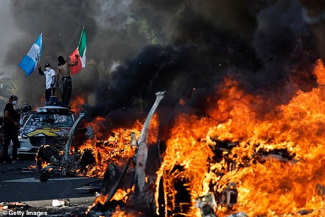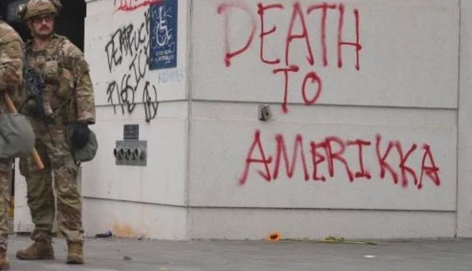 When I see the numerous images of Illegal Alien Invaders and their supporters in the SEIU, Black Lives Matter, Antifa, the Party for Socialism and Liberation, LaRaza and Union del Barrio waving the foreign flags of Mexico, Honduras, Venezuela and even an Islamofascist flag or two, with cries of Allahu Akbar heard in the background on several videos, there isn't any question in my military mind that this is a coordinated attempt to incite an insurrection against the federal government, the Trump administration, to do its best to stop its America First agenda and eventually bring it down, as the people behind it hope they can generate the momentum across our country to create the necessary chaos to achieve this end. We see the same scenario in New York City [Manhattan] over the past weekend, too.